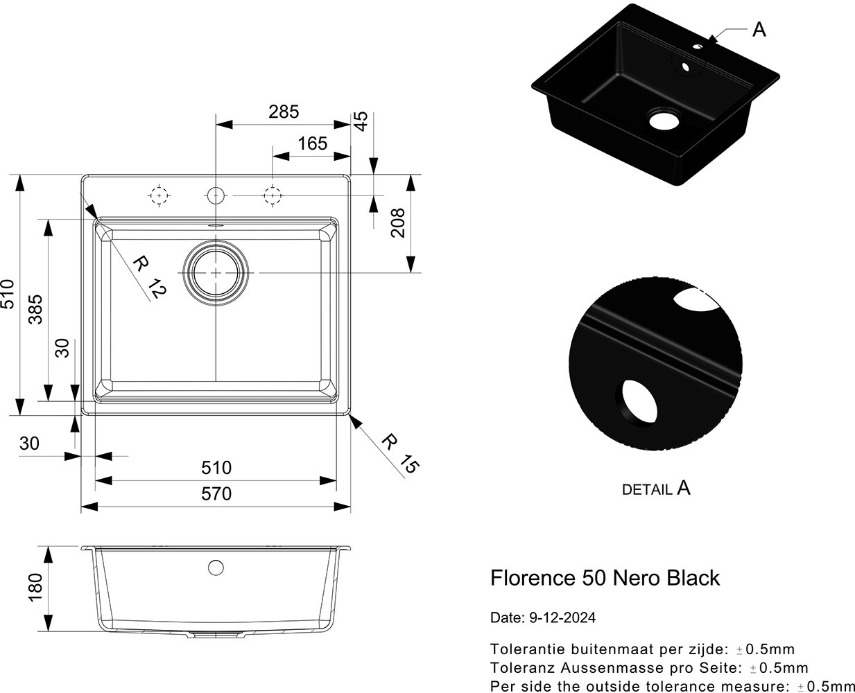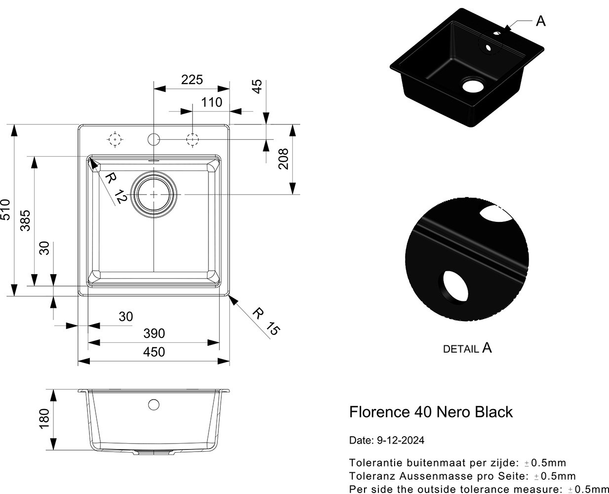 Florence-komposiittiallas on graniittikomposiitista valmistettu keittiöallas.